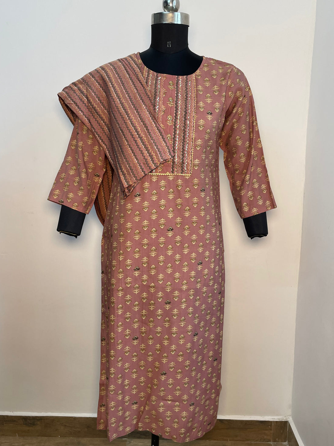 Dusty pink Chanderi Cotton kurta set with dupatta, meticulously crafted to offer a breathable, lightweight...