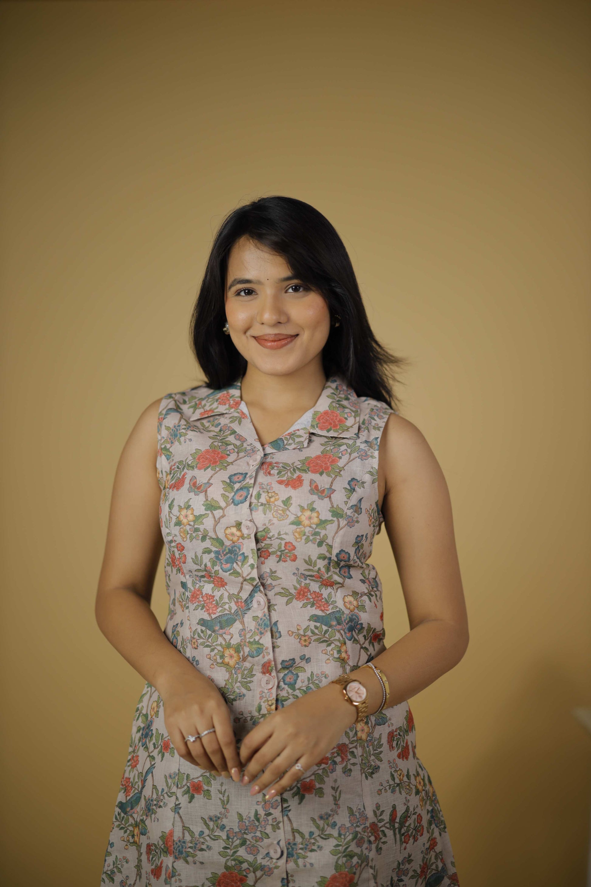 Kurta: Sleeveless with a chic shirt-style collar. A-Line silhouette for a flattering and relaxed look. Functional pockets on both sides for added convenience.