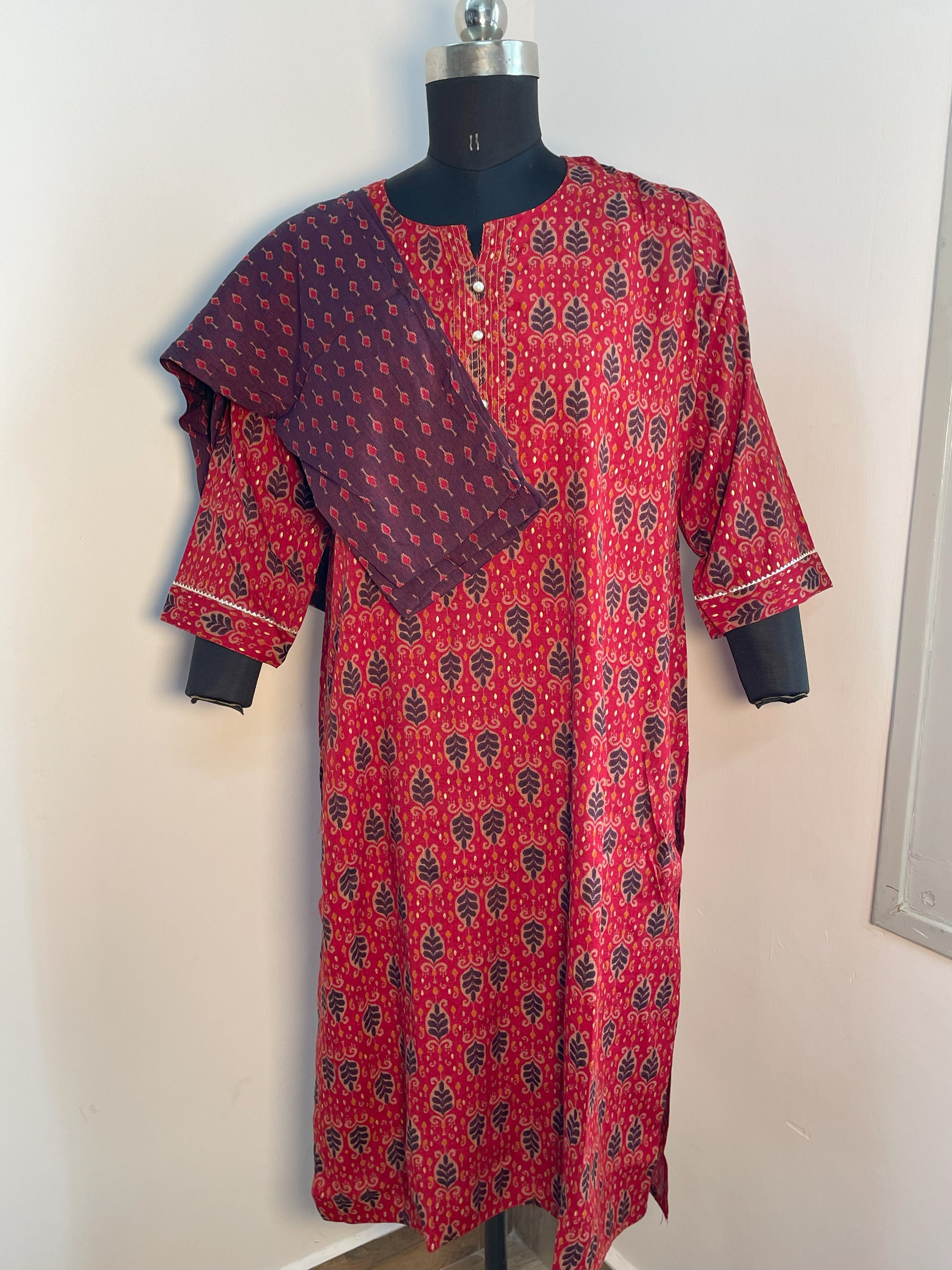 Red cotton kurta set combines style and practicality, effortlessly transitioning from special events to everyday wears. Crafted from premium cotton, it offers a soft, lightweight feel and a breathable quality that drapes elegantly and comfortably.