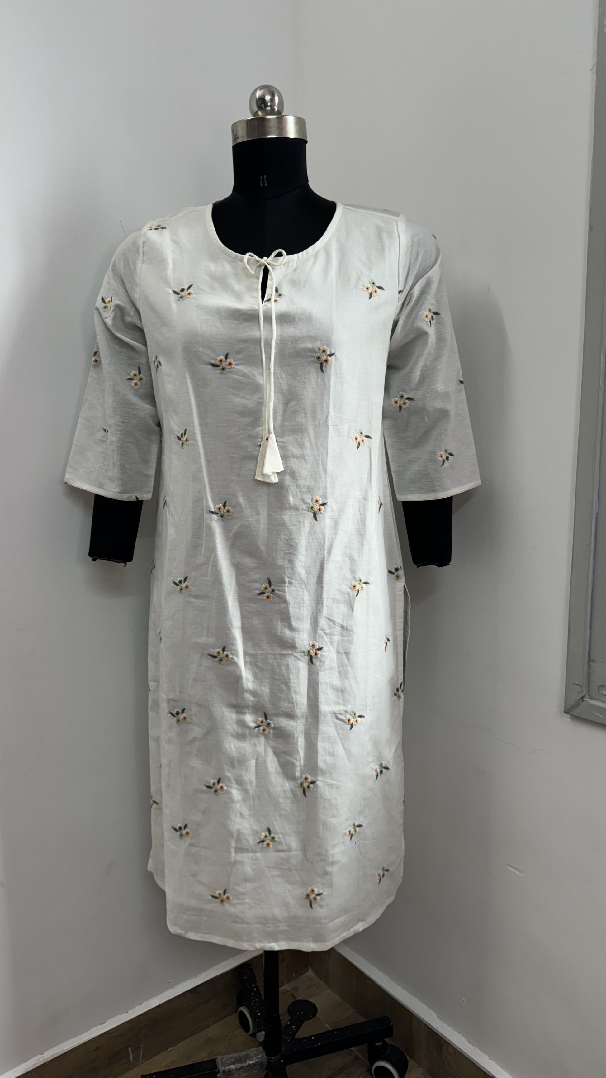 White floral kurta effortlessly blends style and practicality, perfect for both special events and everyday wear. Made from premium cotton fabric, it's soft, lightweight and breathable, ensuring comfort and a refined appearance.